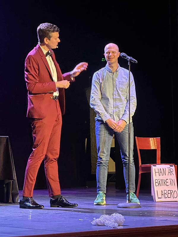 Kvällens Toastmaster i mitten, Kalle Selander, får instruktioner av Lasse. Toastmaster: Kalle Selander, Lördagen den 23 oktober 2010,…