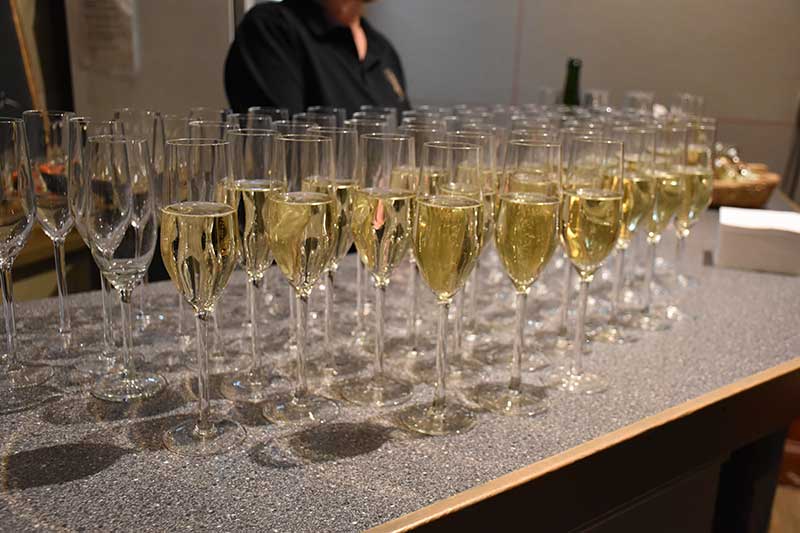 Köpingsbergs Vingård har 3500 vinstockar och ägaren, Carl – Otto Ottergren th, visar hur man sabrerar en Cava. Dvs hugger halsen av…