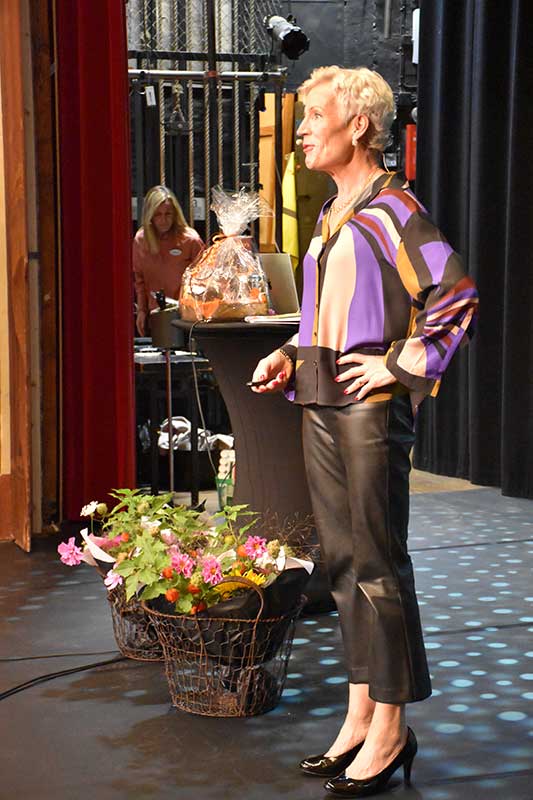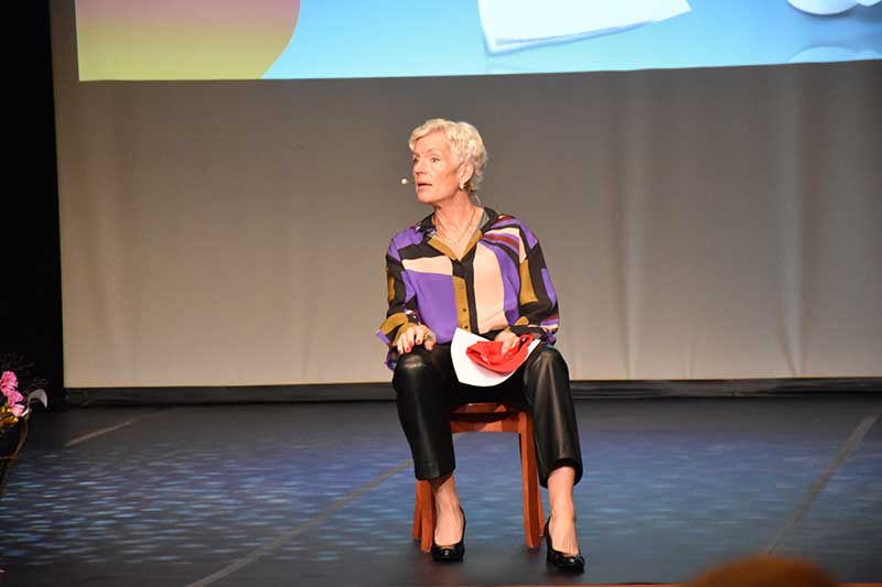 Till den sköna atmosfären bidrog sannolikt också de högt ställda förväntningarna på dagens huvudperson och gästpratare – superkommunikatören Annika R Malmberg. Som skulle komma att infria dessa med råge … ”Lyfta varandra – så blir vi starka tillsammans” var huvudtemat för Annikas föreläsning på stora scenen, som hon intog med karisma, humor och ödmjukhet i smakfull förening. – Min man och jag älskar Österlen och vi brukar åka hit på våren. Så jag tvekade inte när jag fick chansen att komma hit och föreläsa för detta fantastiska nätverk, sade Annika innan hon levererade en halvtimmeslång lektion i teambuilding, relationsbyggande och ledarskap – med vikten av kommunikation som röd tråd – vars värden kan appliceras på såväl företag som idrottslag och i allra högsta grad även på privata relationer.