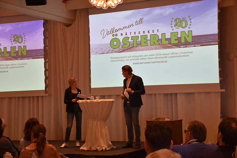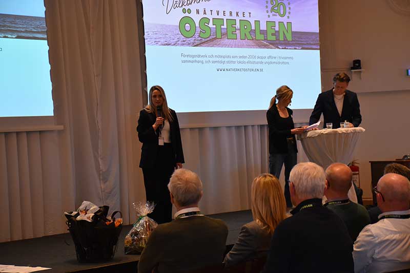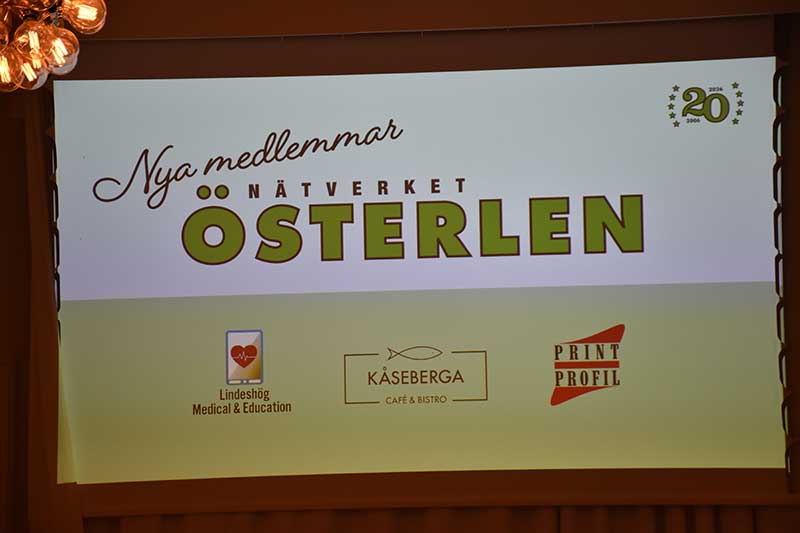 Under vintern har det strömmat in nya medlemmar hos Nätverket Österlen och i vanlig ordning intervjuades de kort på scenen av den alltid lika påläste och proffsige konferencieren Anders Nilsson. Åsa Kryger Wahlin representerade Akka Frakt, Kjell Solander informerade om Lindeshög Medical & Educations verksamhet och Sandra Mårtensson (mamma till den ovan omskrivne stipendiaten Melvin) presenterade Kåseberga Café & Bistro som är ett måste för alla som besöker Österlen. Vi fick också träffa Josefine Ljungberg Palm från Moll Wendén och Mattias Andersson på Printprofil. Under vinjetten 180 sekunder berättade Lars Falk från Radio Active om kanalens exponeringsmodeller inklusive det nya konceptet Företagskampen.