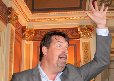 Wester – som debuterade i humorbranschen redan 1994 och är mest känd som parhäst till Anders Jansson i det succéfyllda TV-programmet Hipp Hipp! – levererade i paritet med den både estetiskt tilltalande och välsmakande frukostbuffén som dukats upp i foajén.