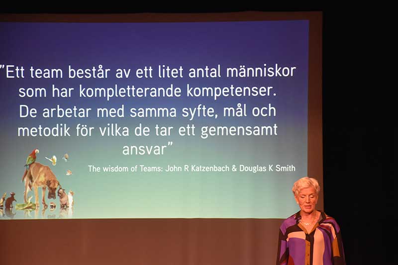 Annika menar att det är närmast affärskritiskt viktigt att jobba konsekvent med feedback och analys i syfte att bli bättre. – Detta är något vi generellt sett inte är så bra på i Sverige. Vi behöver bli påminda om våra olikheter och hur vi kan ge kraft och energi till varandra, hur vi kan använda feedback på ett stärkande och hur vi ska få alla att känna att vi gör den här resan tillsammans. Få kan på ett så underhållande och inspirerande sätt beskriva hur man i en grupp kan bli ännu bättre på att samarbeta genom att lära känna varandra. Annika inspirerar och väcker nyfikenhet – delvis kanske i en sorts förklätt PR-syfte för att få publiken att vilja anlita henne – men hon delar även med sig av konkreta råd i jakten på framgång. Vi gillar också det citat hon använde sig av i syfte att definiera det i sammanhanget så centrala begreppet ”team”.