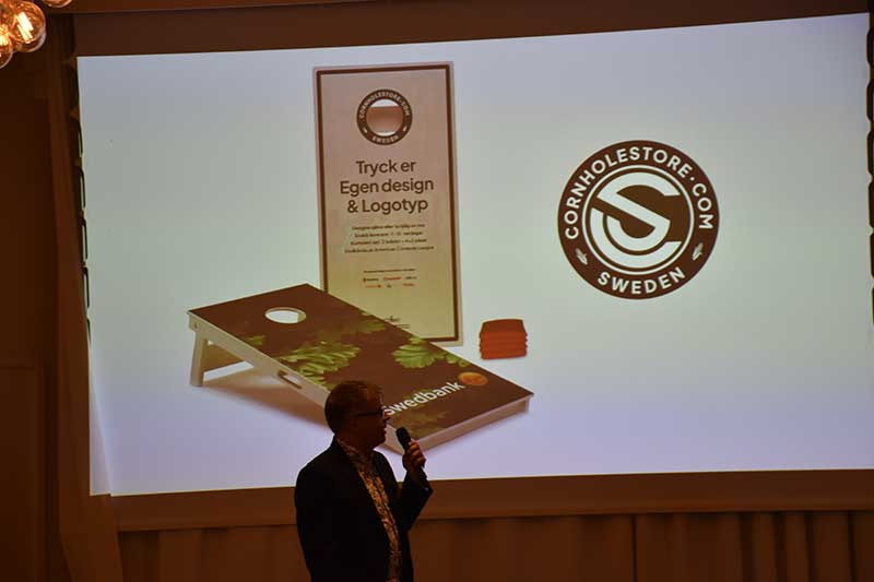 – Vi bjuder in företag under lättsamma förhållanden att svara på frågor av olika grad av seriositet. I företagskampen ingår också en kasttävling, sade Lars som för övrigt har favoritlaget i fotboll gemensamt med föreläsare Lundh – bådas hjärtan klappar nämligen för Landskrona BoIS.