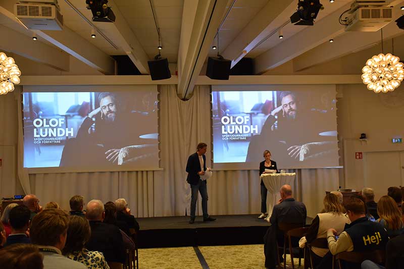 I den efterföljande frågestunden tacklade Olof med briljans och skärpa frågor om journalistikens framtid, sin egen vinnarskalle, Sveriges chanser i det stundande playoff-mötet med Ukraina och hur han känner inför sommarens VM i Nordamerika och alla de ekonomiska och politiska utmaningar som radar upp sig inför detta mästerskap. Den under senare decennier formligen exploderande tevemarknaden för sport i allmänhet och fotboll i synnerhet och de negativa konsekvenserna av denna utveckling, är ett annat ämne som Olof brinner för och sannolikt skulle ha kunnat pratat om hela natten denna fredag. Istället fick de som ville veta mer om Olof Lundhs syn på just detta efteråt köpa hans senaste reportagebok ”Den sista lägerelden”, som handlar om hur Norden blev en av världens hetaste marknader för sporträttigheter.