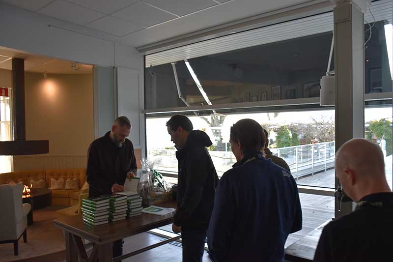 – När det var dags att välja utbildning valde jag att ha roligt snarare än att bli rik. Det är väl tveksamt om jag gjorde rätt, skojade Olof som dock senare under föreläsningen lite i förbigående avslöjade att han omedelbart efter densamma skulle sätta sig och skriva på sin sjunde bok.